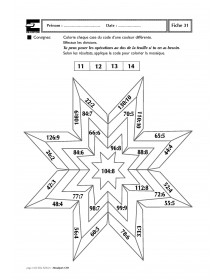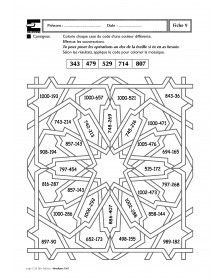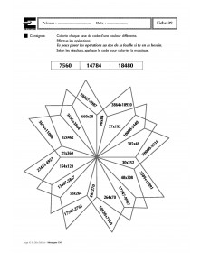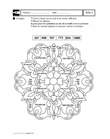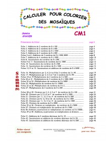 Ce fichier s’adresse aux élèves du CM1 et présente une quarantaine de fiches photocopiables proposant le coloriage codé d’une mosaïque, en relation avec des nombres ou des opérations. L’enfant devra effectuer des opérations puis selon le résultat, colorier d’une couleur déterminée par un code la case contenant l’opération: addition, soustraction, multiplication et division selon les niveaux. Elles sont utilisables en fiches d’évaluation, en fiches d’entraînement ou de soutien lors d’activités par ateliers de besoin. Certaines fiches invitent l’enfant à élaborer mentalement les calculs proposés sans support de l’écrit alors que d’autres, au contraire, nécessitent d’écrire les calculs. Les enfants peuvent utiliser un cahier de brouillon pour poser correctement les opérations. Afin de s’entraîner à l’utilisation d’une calculette, il est possible d’en utiliser une pour colorier certaines fiches.