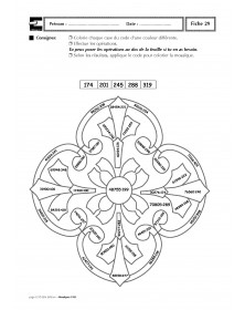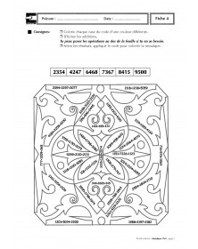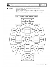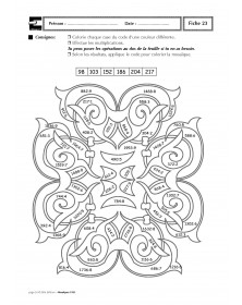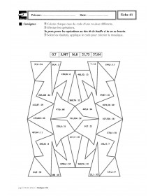 Ce fichier s’adresse aux élèves du CM2 et présente une quarantaine de fiches photocopiables proposant le coloriage codé d’une mosaïque, en relation avec des nombres ou des opérations. L’enfant devra effectuer des opérations puis selon le résultat, colorier d’une couleur déterminée par un code la case contenant l’opération: addition, soustraction, multiplication et division selon les niveaux.