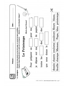 Chaque comptine est accompagnée de fiches d’activités pour les 6/7ans (CP) : tri, lecture, recherche de sons, dessin, copie, jeux d’écriture, création de phrases, production de textes... sur les thèmes des saisons, des fêtes, des animaux, de la famille, de la météo, des objets, des lettres...