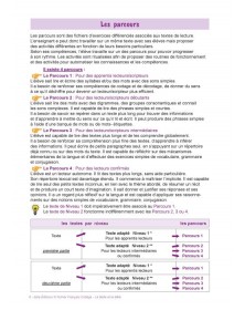 Pour guider la∙le professeur∙e dans ses choix, quant aux textes et aux exercices, un test rapide de lecture est proposé au début de ce fichier ainsi que le détail des compétences travaillées dans les différents parcours proposés. Lorsqu’un parcours est réussi par un élève, l’enseignant.e peut alors augmenter le niveau de difficulté et proposer le parcours supérieur.